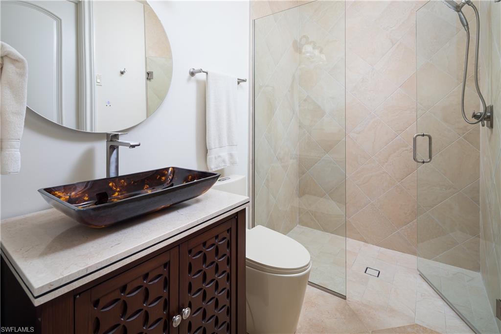 Beautiful home with spectacular Bay views, located in the double-gated "Bayfront" neighborhood of Collier County's premier "Barefoot Beach" community. Delight in breathtaking wide bay views from nearly every room & prime Western exposure for magnificent sunsets over the pool/spa. Only a 5-minute walk to the beach or a 10-minute boat ride to the Gulf from your dual private boat lift. Built like a fortress, this home is crafted with all concrete construction, hurricane impact windows/doors throughout, and a new roof (December 2020)! Other features include soaring high tray ceilings with Brazilian mahogany, 8 ft mahogany doors, travertine marble floors, and 3 new HVACs. Gorgeous chef's kitchen features parallel granite islands, butler's pantry, custom cabinetry, professional-grade appliances with dual Subzero fridge/freezers, Wolf gas stove, 2 ovens, steam oven, dry/wet warming drawer & a wine fridge. Spacious primary bedroom has a spa-like bathroom with a large shower with multiple showerheads, separate tub & walk-in closets. Offers the finest features & finishes such as a whole house water purification system, surround sound, full security system & elevator. Bayfront Dr. homes are built on one side of the street, providing homeowners optimal privacy & views of the Bay.