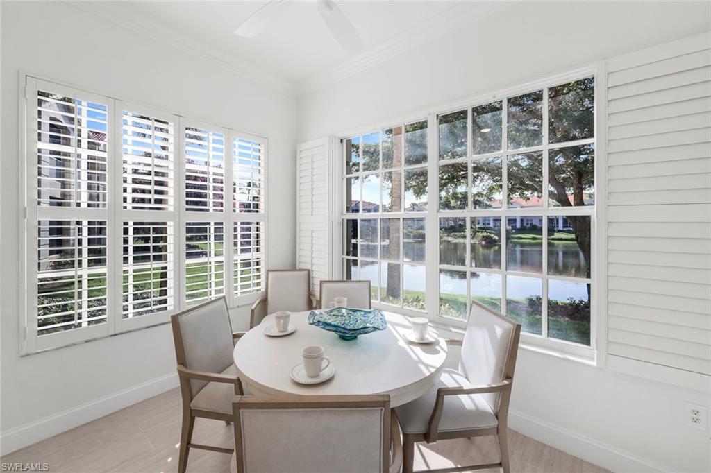Experience the ease of condo living with the space, privacy, and comfort of a single-family home in this light-filled lakefront residence located in The Hamptons at Bonita Bay. Thoughtfully designed with a flowing layout and a serene coastal motif, this home offers two spacious bedrooms, and a den/flex space for guests, a home office, or additional living space, and 2.5 bathrooms. Sunlight streams in through plantation shutters, illuminating the open main living areas finished with tile flooring. The inviting floor plan includes a generously sized breakfast area, a dedicated dining room, and a spacious living room that opens seamlessly to a large lanai overlooking tranquil lake views--perfect for morning coffee or evening relaxation. The primary suite features peaceful lake vistas, ample closet space, and a well-appointed en-suite bath. The guest suite, located on the opposite side of the residence, offers quiet privacy. Completing the home is a two-car garage, adding convenience and storage. Residents of The Hamptons at Bonita Bay enjoy a private community pool. At the same time, Bonita Bay's renowned amenities include a private beach park, marina, miles of walking and biking trails, optional golf and tennis memberships, fitness center, dining venues, and more--all just minutes from Gulf beaches, shopping, and dining. Light, bright, and coastal in style, this residence offers the best of Bonita Bay living.