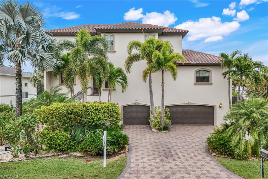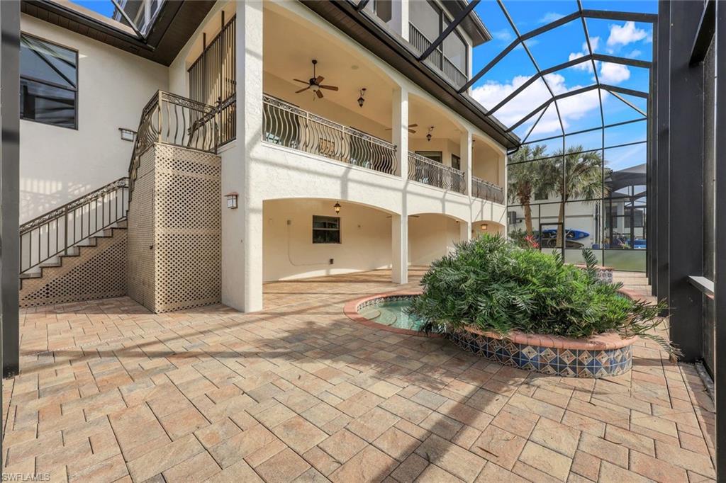 Welcome to your ultimate waterfront retreat! Perfect for boating enthusiasts, this spectacular Florida home offers unparalleled luxury and endless opportunities to live your best coastal life. This three-story masterpiece features concrete block construction on the lower levels for added durability. Hurricane season? No problem. With impact glass throughout, impact-rated garage doors, storm smart interior walls, and a whole-home Kohler generator powered by a 500-gallon propane tank, you'll always have peace of mind. The home's layout includes a HUGE 4 car garage, three bedrooms, two bathrooms, and an office with built-in cabinets. The 10-foot ceilings, crown molding, and LED lighting create an inviting ambiance, while the travertine marble floors and powder-coated iron railings add elegant finishing touches. Step outside and be greeted by a Trex decking boat dock complete with a 3000 lb. lift. Think fishing for snook, spotting manatees, or simply cruising into the sunset. Nature lovers, rejoice! Dolphins, herons, and crabs frequent these serene waters, adding to the magic of your private oasis. The 2 story screened-in pool cage, updated in 2023, surrounds a sparkling saltwater/chlorine pool with plenty of space for lounge chairs and room to entertain. A propane fire pit and extreme privacy make enjoying the space effortless. Inside, you'll find luxury everywhere. The expansive second-floor balcony offers PRIVATE breathtaking western views of the sunset, perfect for sipping cocktails as nature puts on a show. The kitchen is equipped with granite countertops and stainless steel appliances. Tile floors flow through the main level, and the gas fireplace provides cozy comfort on the main floor. The master suite is a true retreat with two massive walk-in closets, tray ceilings, uplighting, and a private third-floor balcony. The master bathroom feels like a spa with dual vanities, a makeup station, and a walk-in shower. This home is as functional as it is stylish. It features a whole-house surround sound system, intercom, and a Rain Bird irrigation system installed in 2022, supplied by a 300-foot well. It also has a huge, reinforced RV pad wired with a 50AMP subpanel and a sewer access flush-out. The property also has safe rooms for valuables and storm protection, Manabloc manifold plumbing for efficiency, child protection for the pool, TILE ROOF, large circle paver driveway, epoxy floors for the entire lower level, and storage galore. This is more than a home; it's a lifestyle. Speaking of lifestyle, this home is centrally located just minutes to up and coming Downtown Bonita Springs, a stone's throw from North Naples, a quick drive to Estero, Ft Myers Beach, Downtown Naples, & the airport is only about 20 minutes away. If boating, sunsets, & luxurious Florida living are calling your name, don't let this one slip away.