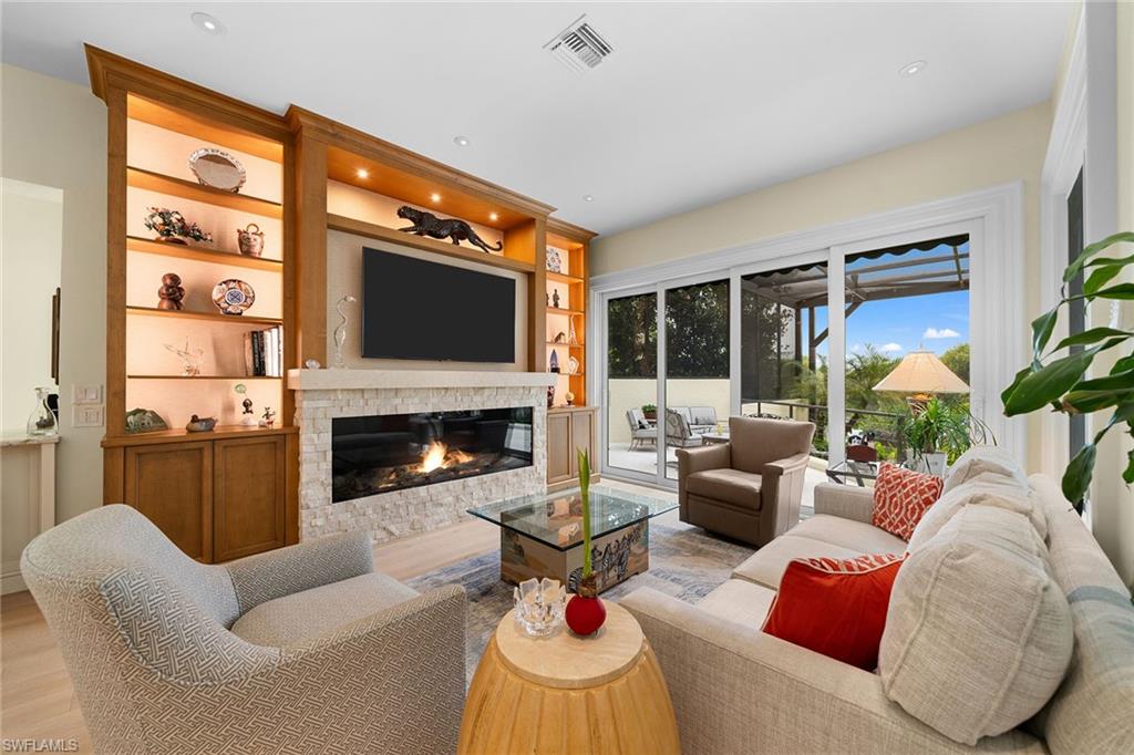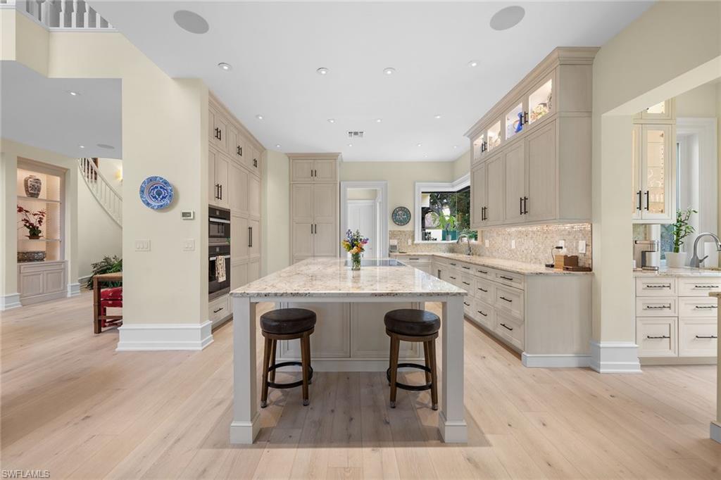 Stunning detached villa in prime location of Bay Colony, in this pet-friendly neighborhood where luxury meets tranquility. This custom remodeled masterpiece by 41 West sits on one of the largest sites in Vizcaya and boasts spectacular views of the water and mangroves, creating a serene backdrop for your everyday life. With four spacious bedrooms and four full plus two half baths, this home offers 4,583 total square feet of elegant living space. Go inside to discover gorgeous white oak wood floors that flow seamlessly throughout the open-concept design, enhancing the villa's coastal charm. The heart of the home features a stylish gourmet kitchen ideal for culinary enthusiasts. Go outside to your private oasis, complete with a screened pool and spa, ideal for relaxing under the sun or entertaining guests. The fenced side yard is unique for a villa community. It can be an excellent space for a pet or children to play. It is beautifully landscaped and includes custom lighting, adding an enchanting touch to your outdoor space. Air-conditioned garage. Don't miss the opportunity to own this exceptional villa in Bay Colony and enjoy all Bay Colony and Pelican Bay have to offer, including a private full-service beach club and tennis center. and state-of-the-art fitness center.